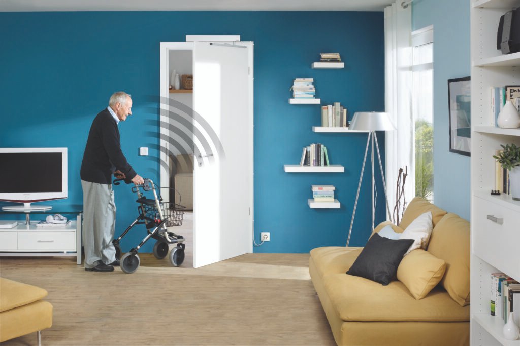 Haustüren und Zimmertüren mit Türantrieb sind zentrale Elemente für barrierefreies Wohnen. Mit dem Innentür-Antrieb PortaMatic lassen sich Zimmertüren bequem per Wandschalter, Funk-Handsender, der Hörmann BlueSecur App via Bluetooth oder über die Smart Home Zentrale Hörmann homee automatisch öffnen und schliessen. Die Montage ist unkompliziert durch Fachpersonal möglich und kann bei Bedarf rückstandslos wieder entfernt werden – ideal auch für Mietwohnungen. Der Stromverbrauch liegt bei weniger als drei Franken pro Jahr.