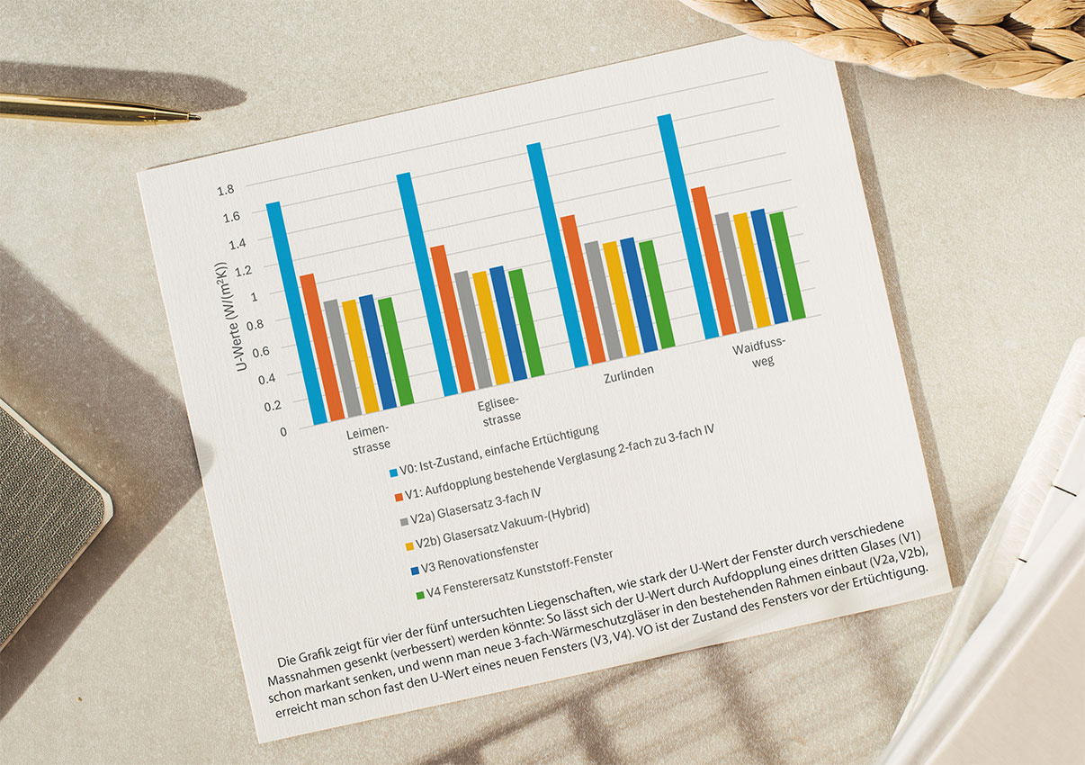 Die Forschenden untersuchten fünf Liegenschaften in Basel und Zürich, die überwiegend eine Zweifach-Wärmeschutzverglasung mit Edelgasfüllung aus den Jahren 1995 bis 2003 haben. «Wir waren erstaunt, in welch gutem Zustand die Fenster im Allgemeinen noch waren», sagt Gregor Steinke, FHNW-Wissenschaftler und Co-Leiter des Projekts. Der gemessene U-Wert der Fensterverglasungen lag zwischen 1.0 und 2.2 Watt pro Quadratmeter Kelvin, und die wärmedämmende Wirkung des Edelgases war in den meisten Fällen intakt (Gasfüllgrade zwischen 70 und 93 Prozent). Bei rund der Hälfte der Fenster lag der U-Wert bei 1.3 Watt pro Quadratmeter Kelvin und tiefer. «In diesem Fall ist ein Fensterersatz oder eine Glasaufdopplung nicht unbedingt nötig», sagt Steinke.
