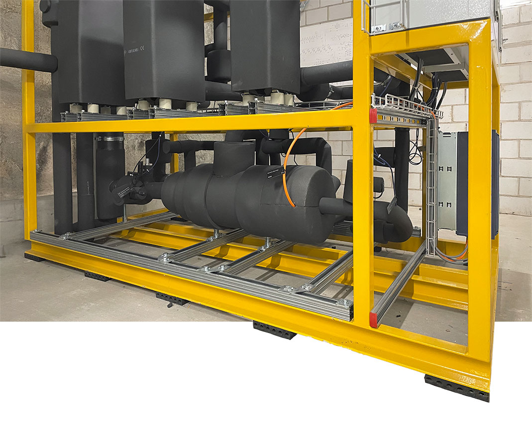 Trotz dieses Fehlschlags waren die ersten Betriebsversuche erfolgreich: Das Projektteam hatte mit der Kolbenpumpe den Nachweis erbracht, dass das ETS unter realen Betriebsbedingungen grundsätzlich funktioniert. Dank dieser positiven Betriebserfahrung konnte ein Pumpenhersteller für die Neuentwicklung einer robusten Pumpe mit den gewünschten Spezifikationen gewonnen werden: Es handelt sich um eine halbhermetisch ausgeführte Radialpumpe, die in einem Stahlgehäuse mit hoher Druckbeständigkeit (130 bar) untergebracht ist. Diese Neuentwicklung kam im Herbst 2024 im ETS der Kälteanlage im Prodega-Markt St. Gallen erstmals zum Einsatz. Die Pumpe hat in den ersten Monaten ihren Dienst zuverlässig und ohne Leckagen verrichtet. Dank der höheren Druckbeständigkeit der Radialpumpe kann diese geringfügig anders im ETS eingebunden werden, wodurch ein deutlich geringerer Druckhub von rund 15 bar ausreicht, was energetisch vorteilhaft ist. «Mit der neu entwickelten Radialpumpe konnten wir das ETS so umsetzen, wie wir es ursprünglich geplant hatten», sagt Schönenberger. «Unsere ersten Messungen deuten darauf hin, dass wir den berechneten Effizienzgewinn von acht Prozent mit dieser Konfiguration sogar noch etwas überbieten können.»