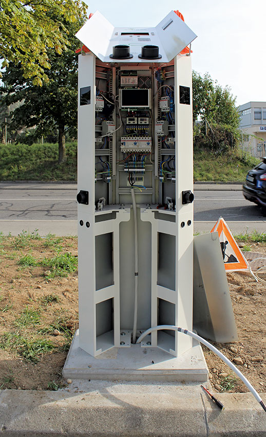 Ein entscheidender Vorteil dieser Ladestation ist die unkomplizierte, schnelle und dadurch kostengünstige Installation. Aufgrund des Unterbaus kann auf eine Schalung verzichtet werden und die notwendigen Einführungslöcher lassen sich problemlos mittels Kronenbohrer vor Ort praktisch und punktgenau auf diesen äusserst leichten Schacht setzen. Natürlich ist der Betonsockel mit dem notwendigen Einführungsloch für die Elektro-Einspeisung ebenfalls schon vorbereitet. Diese Vorgehensweise erlaubt eine Installation auf einem stark frequentierten Parkplatz (zum Beispiel bei Bahnhöfen, Poststellen, Einkaufszentren, Sport- und Freizeitstadien) in knapp einem Tag – und dadurch kann, zum Wohl des Kunden, die Anlage schnellstmöglich in Betrieb genommen werden und es finden keine langen und mühsamen Strassensperrungen statt.